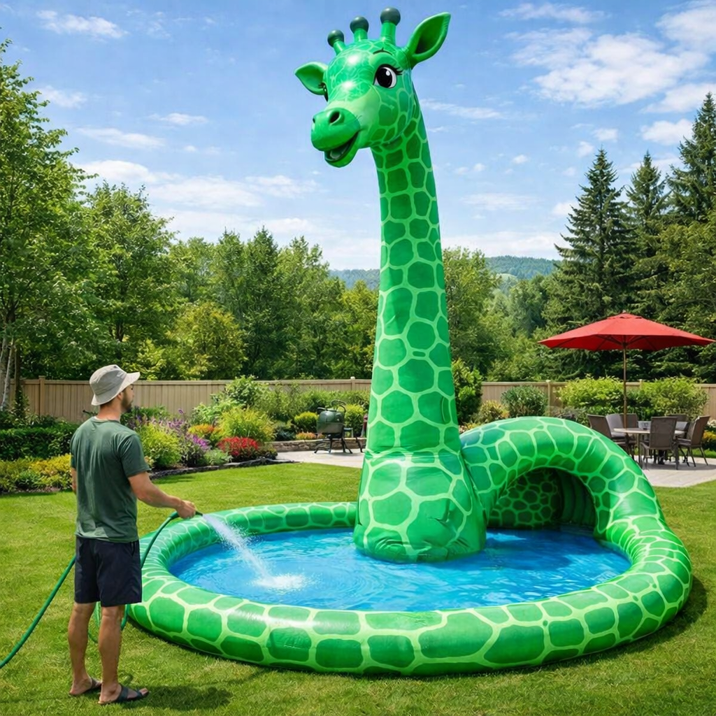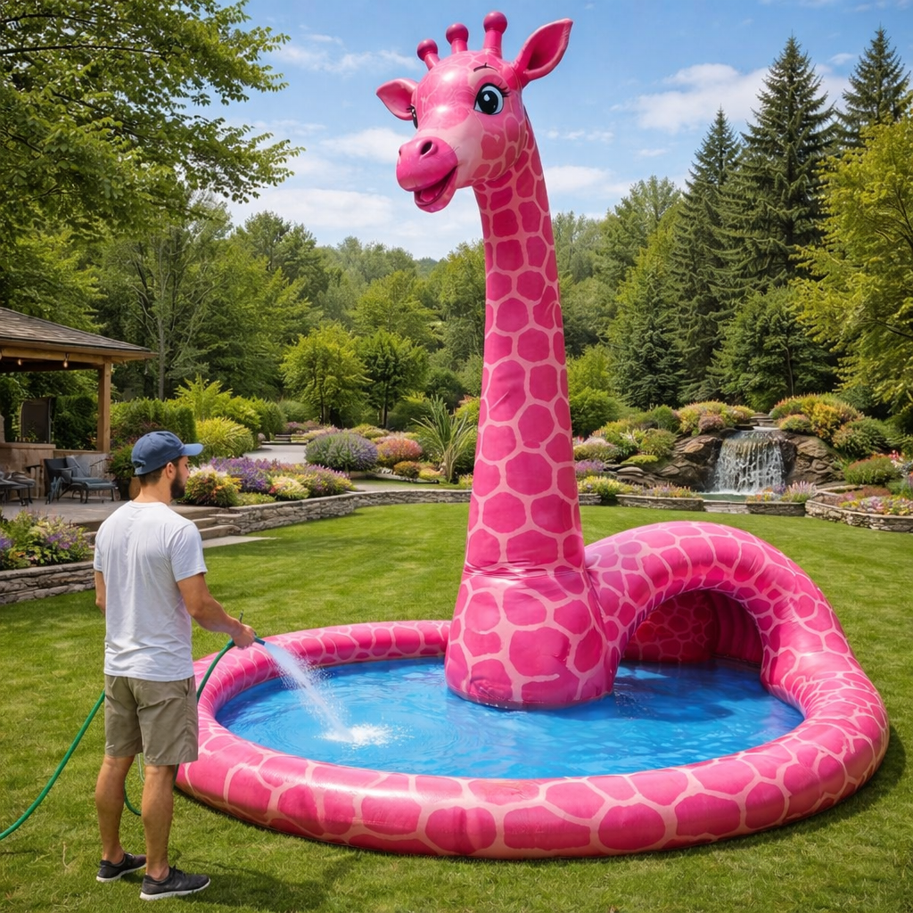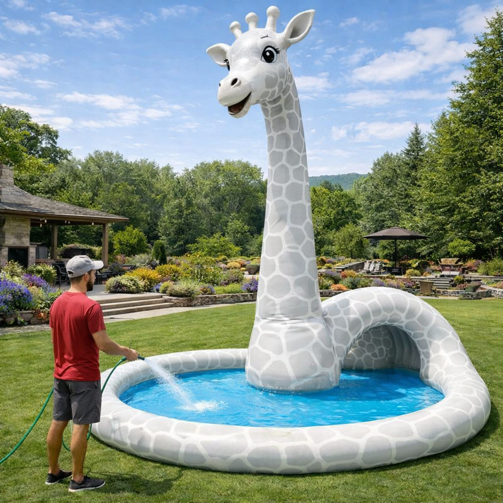 My friends, pack your imaginary binoculars and grab a cold beverage. It is time to introduce you to the undisputed king of the backyard oasis: The Giant inflatable giraffe pool.